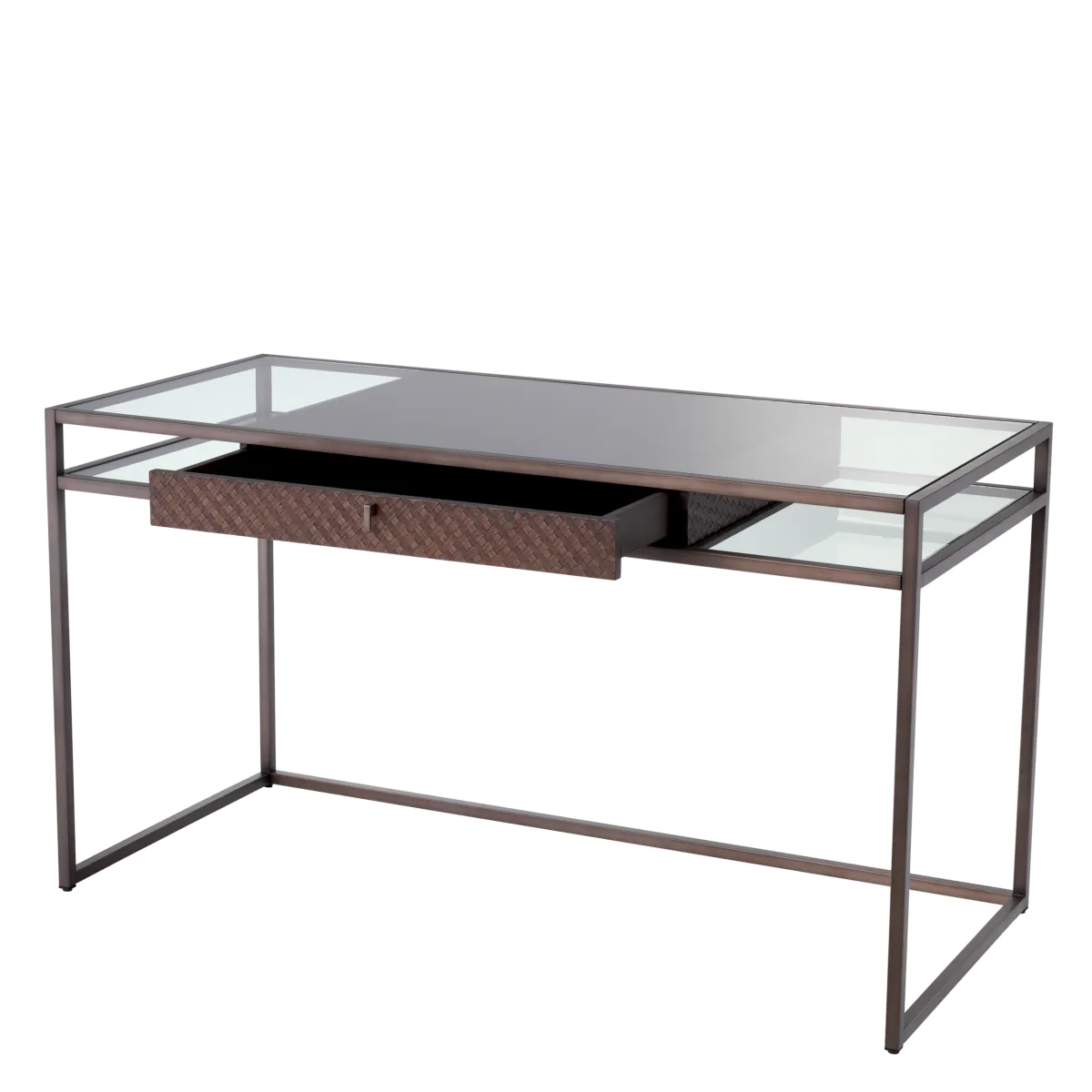 Pairing Bauhaus style with a Mid-Century Modern look, the Napa Valley Desk showcases a sleek stainless steel frame, a clear glass top and a drawer of woven oak veneer with a stainless steel knob.