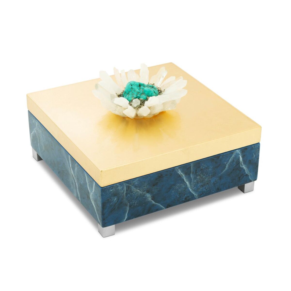 Precious wooden box with marbled effect finishing and insert made with natural stones.
