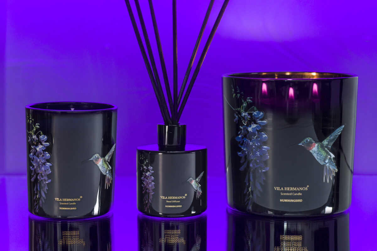 Colibri Hummingbird candle has a warm, exotic and tropical scent with fresh and moist notes of freshly cut grass and neroli, followed by floral notes of gardenia bouquet and violet. The candle has a painted glass and wick to accentuate the shape and create a warm magical atmosphere.