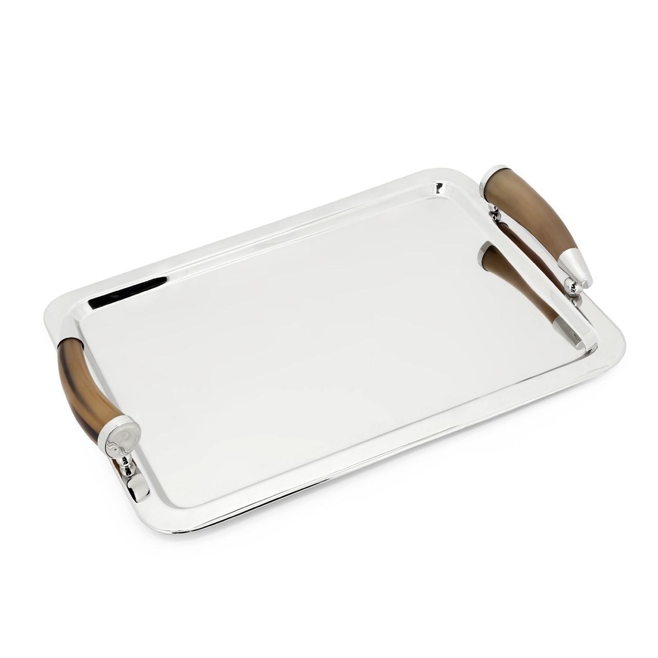 Metal tray with horn handles.