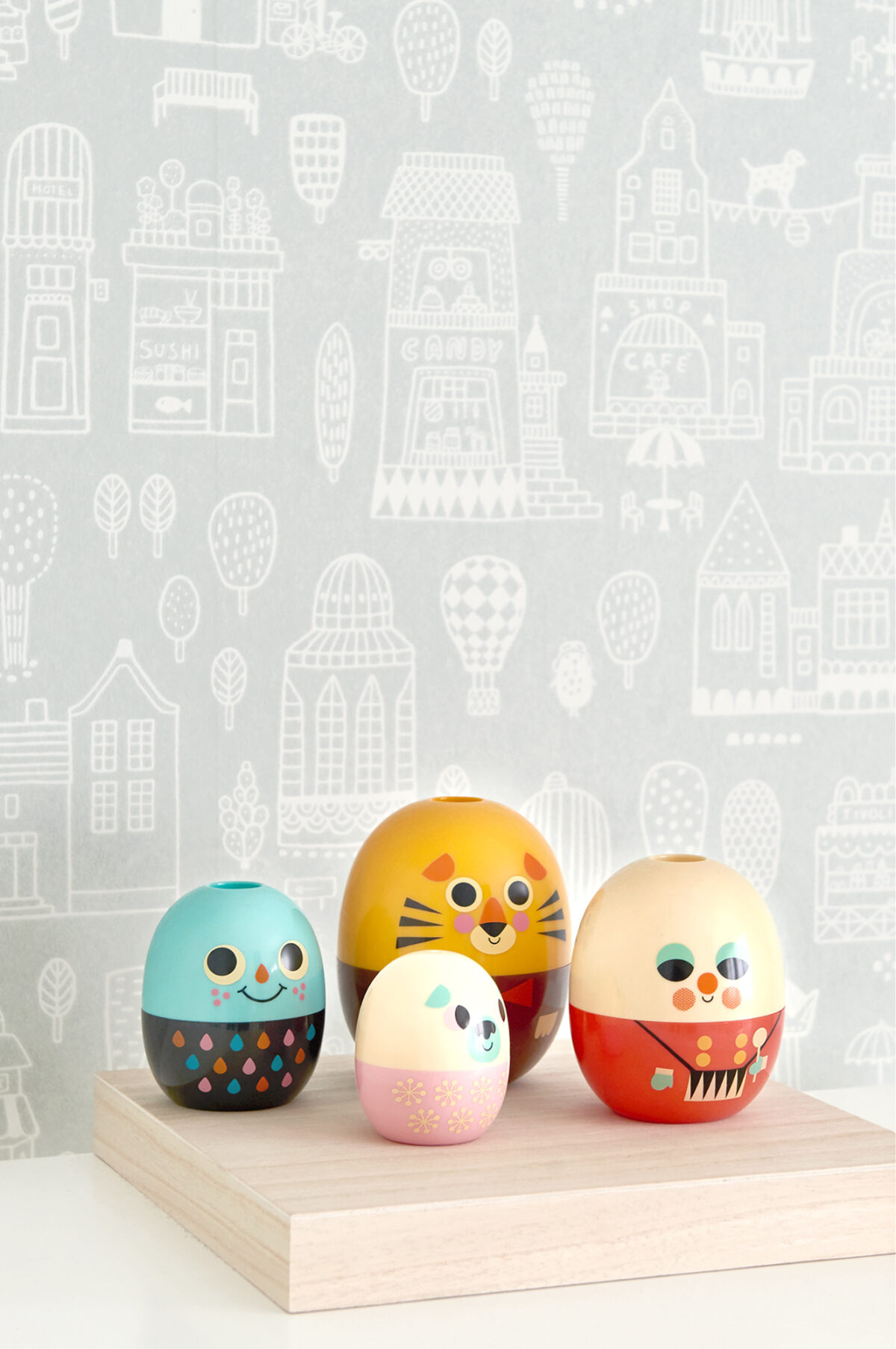 Тематические миры, созданные специально для детей, характеризуют сказочную работу лейбла обоев Majvillan. Здания, деревья, животные и ярмарочные аттракционы в сером и белом цветах были задуманы с учетом интересов детей, а графическая интерпретация исключительно подходит для детей. Карусели, колеса обозрения и воздушные шары превращают город в игровую площадку.