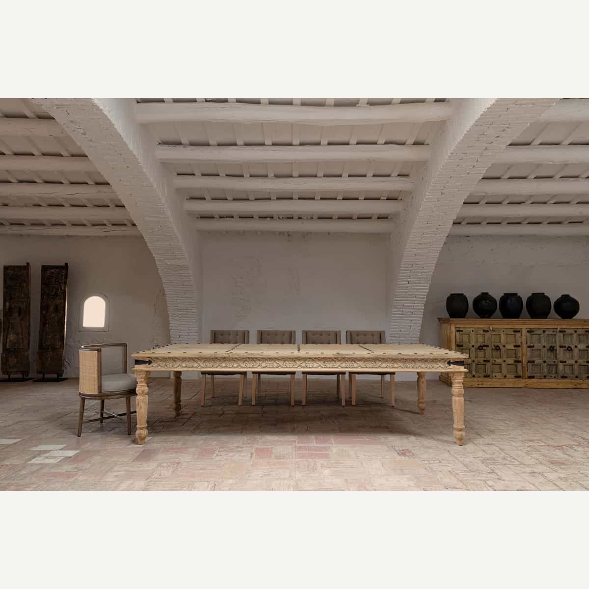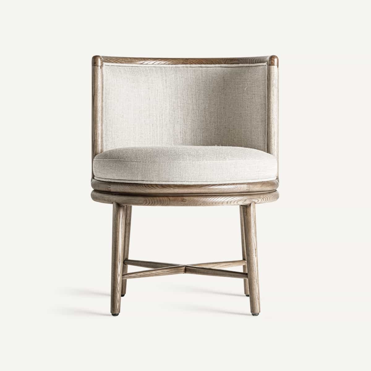 Vical Home Chair Varaire, в колониальном стиле, из дуба коричневого цвета в сочетании с белой тканью.