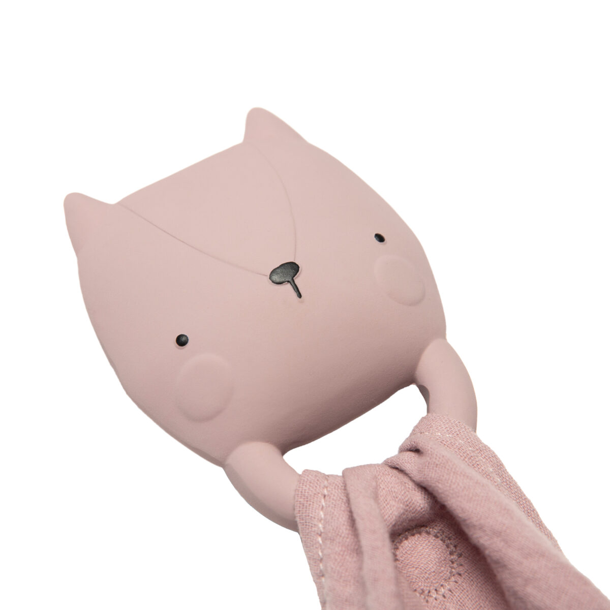 Comforter with teething ring in 100% natural rubber with a Zappy the Squirrel design. The comforter can be removed from the teething ring and washed as needed. Perfect for cosy moments and bedtime.